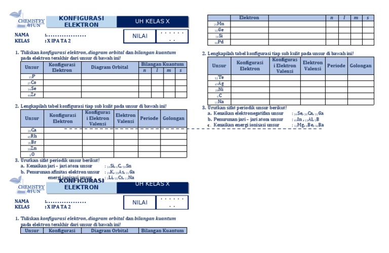 1 13al Konfigurasi Elektron Diagram Orbital Bilangan Kuantum Elektron Terakhir Konfigurasi Brainly Co Id