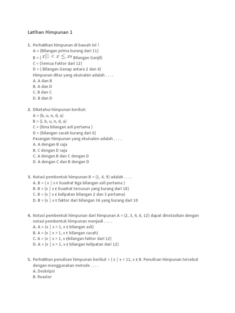 Ulangan Kenaikan Kelas 7 4 Perhatikan Himpunan Berikut I Himpunan Bilangan Cacah Kurang Dari Pdf Document