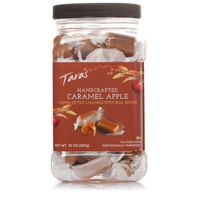 Amazon Com Tara S All Natural Handcrafted Gourmet Caramel Apple Flavored Caramels Small Batch Kettle Cooked Creamy Individually Wrapped 20 Ounce Brown Grocery Gourmet Food