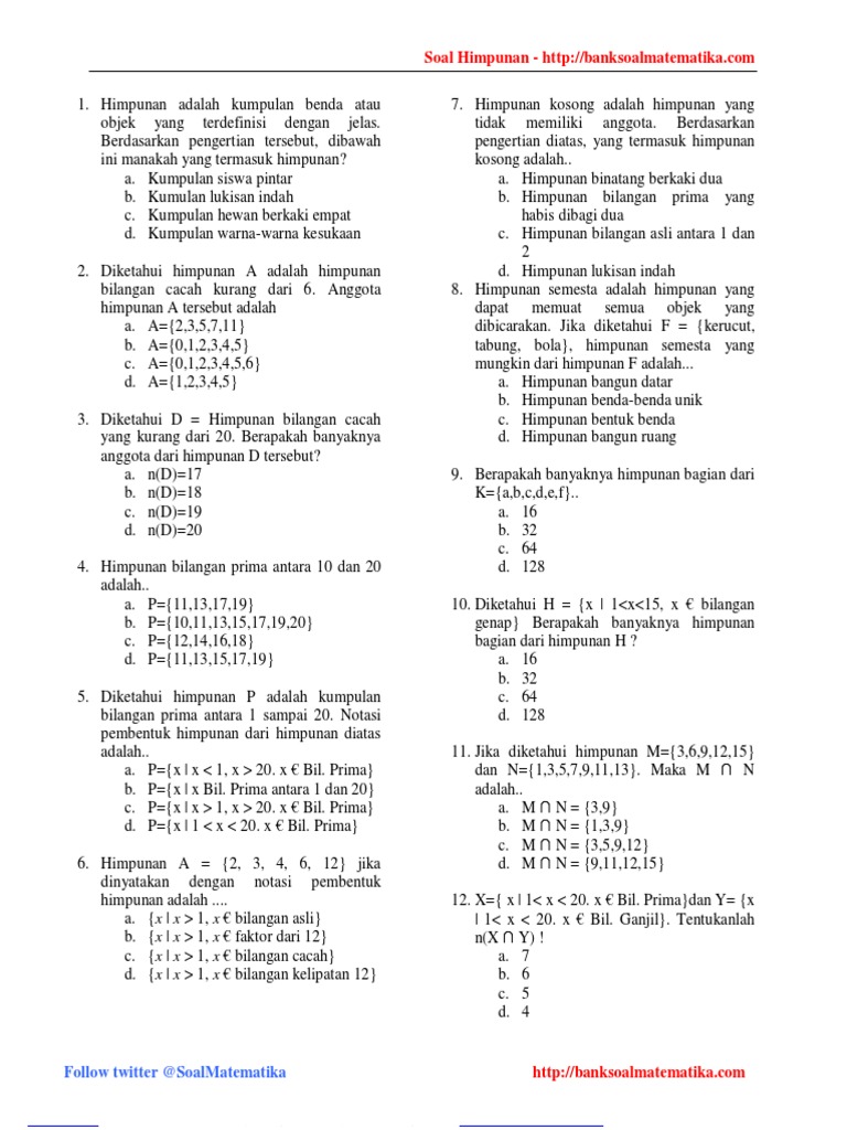 Banyaknya Himpunan Y Bilangan Prima Lebih Dari 6 Dan Kurang Dari 20 Adalah A 8 B 16 C 32 D 64 Brainly Co Id