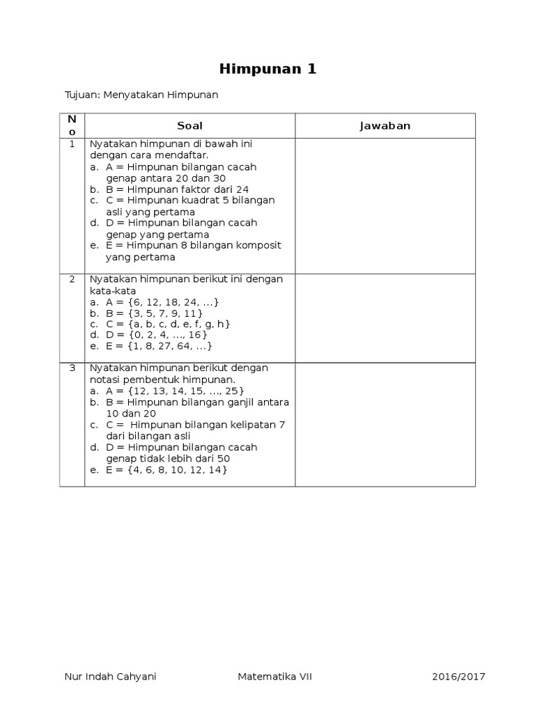 Jawaban Soal Uraian Uji Kompetensi Bab 2 Matematika Kelas 7 Smp Himpunan Halaman 190 Contoh Materi Pendidikan