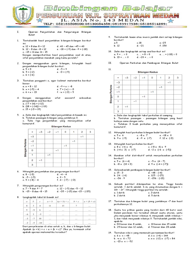 Materi Dan Soal Matematika Operasi Hitung Penjumlahan Dan Pengurangan Bilangan Bulat Materi Dan Soal Sd Smp