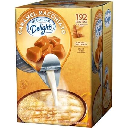 International Delight Caramel Macchiato Liquid Creamer 192 Count Pack Of 1 Box Shelf Stable Single Serve Non Dairy Flavored Coffee Creamer Great For Home Us International Delight Coffee Creamer Grocery International Delight Coffee