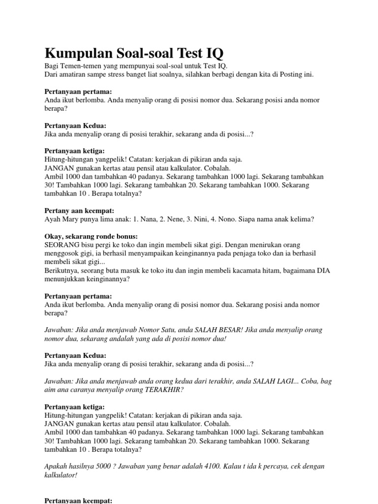 Tes Iq Memorado Lengkap Dengan Jawaban Indonesia Meme