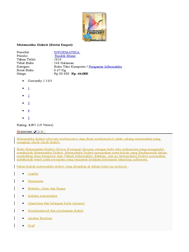 Bestseller Buku Matematika Diskrit Revisi Terbaru Rinaldi Munir Kertas Alat Tulis Kantor Perlengkapan Kantor Bukalapak Com Inkuiri Com