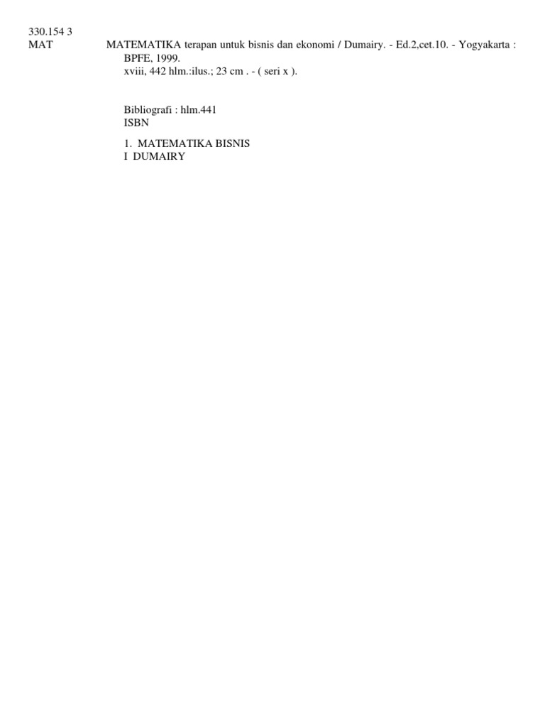 Open Library Matematika Terapan Untuk Bisnis Dan Ekonomi Edisi 2003 2004