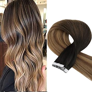 Amazon Com Sunny Remy Hair Extensions 24 Inch Human Hair Tape In Ombre Darkest Brown To Medium Brown Mixed Caramel Blonde Balayage Tape In Hair Extensions 50g 20pcs Beauty