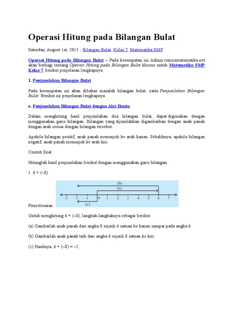 Operasi Hitung Bilangan Bulat Pada Operasi Hitung Soal Diatas Adalah Operasi Penjumlahan Maka Digunakan Istilah Maju Yang Berarti Tambah Dari Titik Nol Melangkah Kekanan Pdf Document