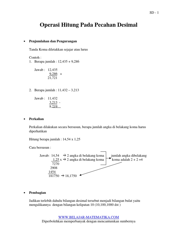 Cara Menghitung Operasi Perkalian Dan Pembagian Pada Bilangan Pecahan Desimal Beserta Contohnya Berpendidikan Com