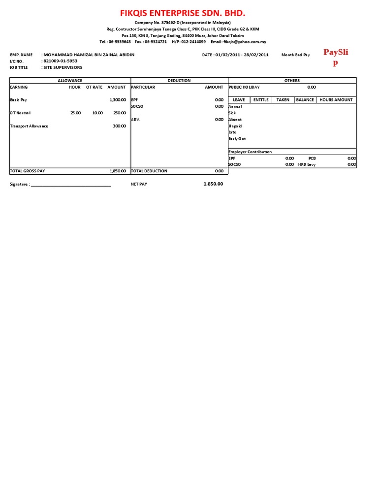 Salary Slip Malaysia Template For Payroll Software Malaysia
