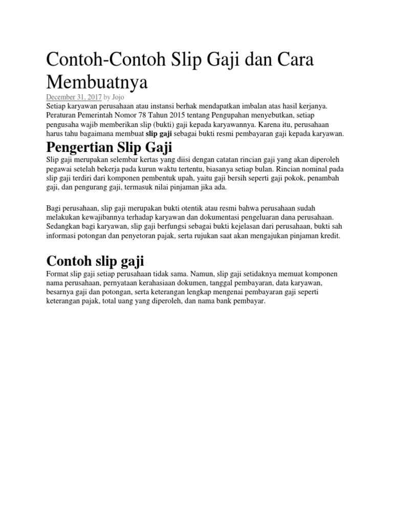 Contoh Slip Gaji Karyawan Toko Doc Bagikan Contoh