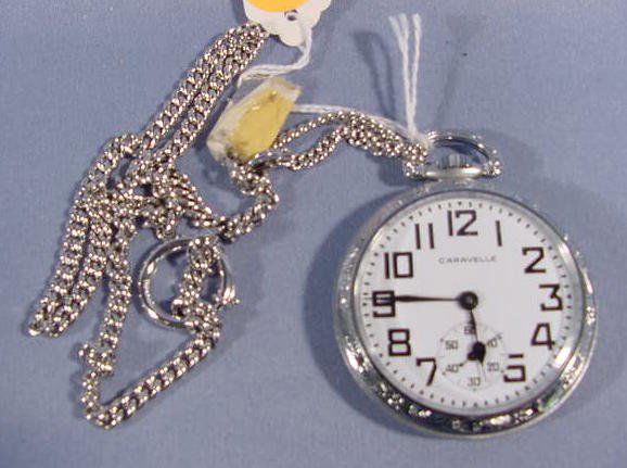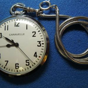 Vintage Bulova Caravelle Thin Line Dress Pocket Watch 100 All Original Complete With Watch Chain P4269 Lrj
