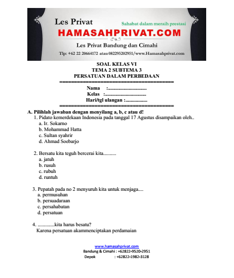Soal Ulangan Harian Tematik Kelas 3 Tiga Sd Mi Tema 2 Subtema 1 Manfaat Tumbuhan Bagi Kehidupan Manusia Ahzaa Net