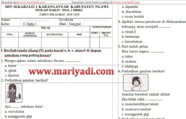 Soal ulangan harian kelas 3 tema 2 subtema 1 dan 2. Contoh soal siap penilaian harianulangan harian phuh jenjang sdmi kelas 3 tema 2 subtema 123 dan 4 kurikulum 2013 tahun pelajaran 20192020 blognazmy pada kesempatan ini saya akan memberikan mengenai soal siap penilaian harianulangan harian phuh jenjang sdmi kelas 3 tema 2 subtema 123 dan 4 kurikulum 2013 tahun pelajaran 20192020. Ppkn kd 34 6. Yang bertanggung jawab membersihkan.