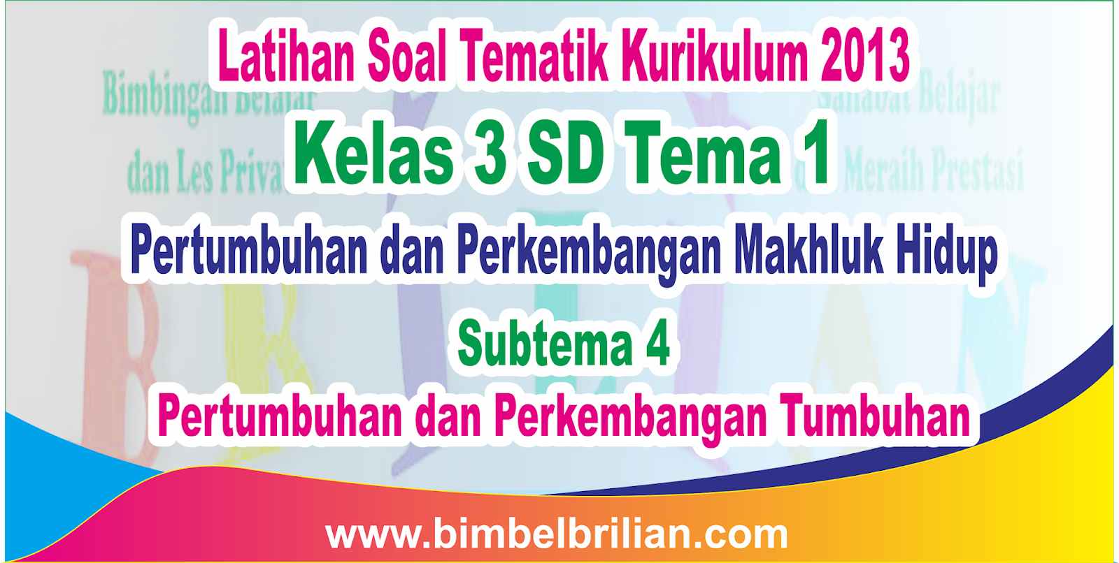 Soal tematik kelas 3 sd tema 1 subtema 4 pertumbuhan dan perkembangan tumbuhan dilengkapi kunci jawaban 29 mei 2019 18 juli 2020 admin bimbel brilian 0 komentar latihan soal tematik kelas 3 sd kurikulum 2013 k13. Soal yang kami berikan sudah berdasarkan buku paket k13 edisi revisi terbaru. Pada setiap tema terdapat 4 paket soal yang merupakan perwakilan dari setiap subtema.