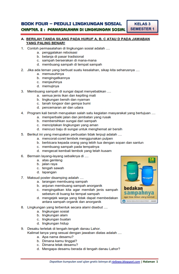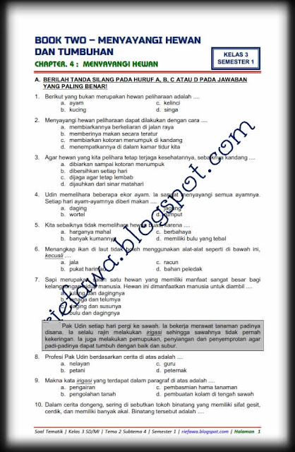 Soal Ulangan Harian Kelas 3 Tema 3 Subtema 1 Kurikulum 2013 Sd Mi Edisi Revisi 2018 Riyanpedia