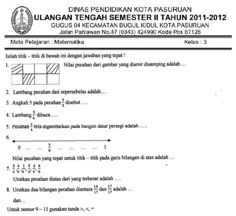 Contoh Soal Pecahan Kelas 4 Semester 1 Kurikulum 2013 Kumpulan Soal Pelajaran 8