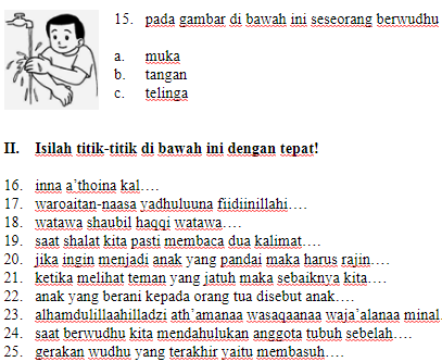 Soal Agama Islam Kelas 2 Sd Semester 1 Dan Kunci Jawaban Kurikulum 2013 Info Pendidikan Terbaru