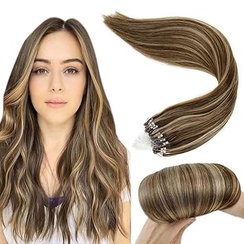 Amazon Com Laavoo 22 Highlights Micro Beads Remy Loop Hair Extensions Color Dark Brown Mixed Caramel Blonde Straight Long Healthy Real Human Hair Cold Fusion Extension For Girls 1g S 50g Per Package