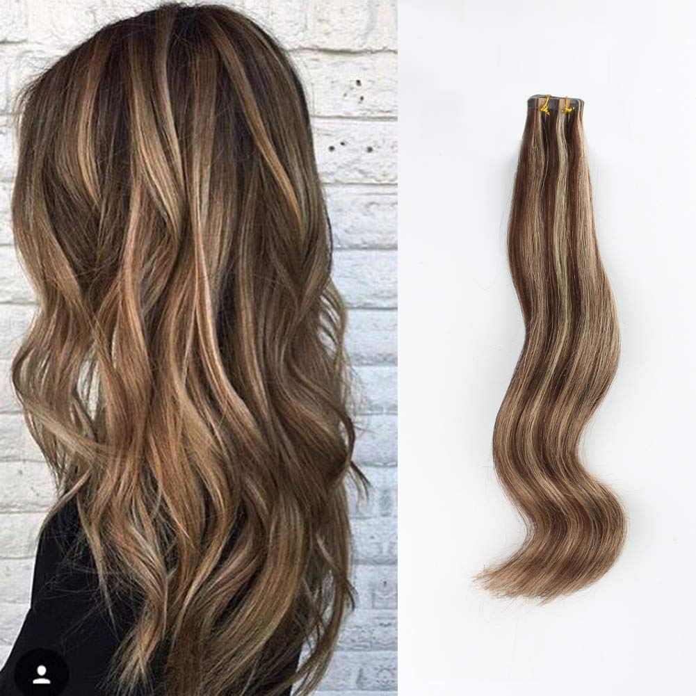 Amazon Com Abh Amazingbeauty Pre Taped Sun Kissed Tape Hair Extensions Highlights Double Side Real Remy Human Hair Skin Weft Invisible Seamless 50g 20pcs Dark Brown With Dark Dirty Blonde Color 3 12 18 Inch Beauty
