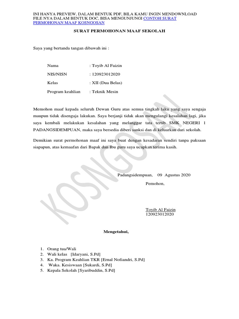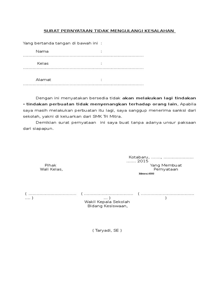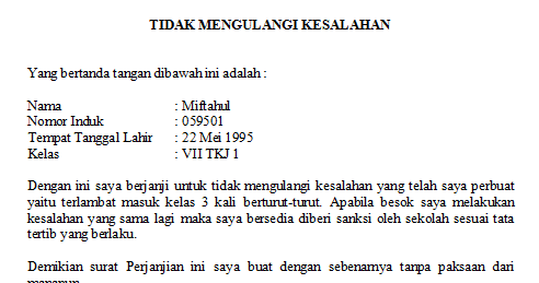 Contoh Surat Pernyataan Bersalah Dalam Bahasa Inggris Beserta Artinya