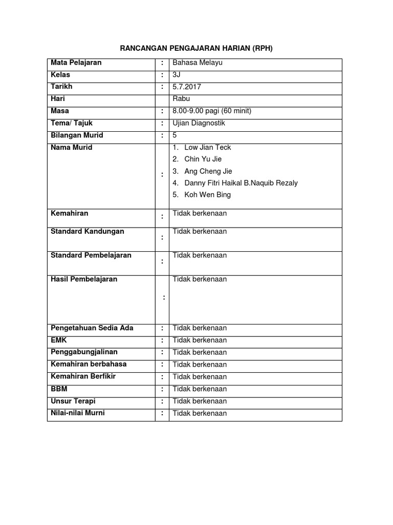 Dunia Pendidikan Pemulihan Ujian Diagnostik Bahasa Melayu Bertulis