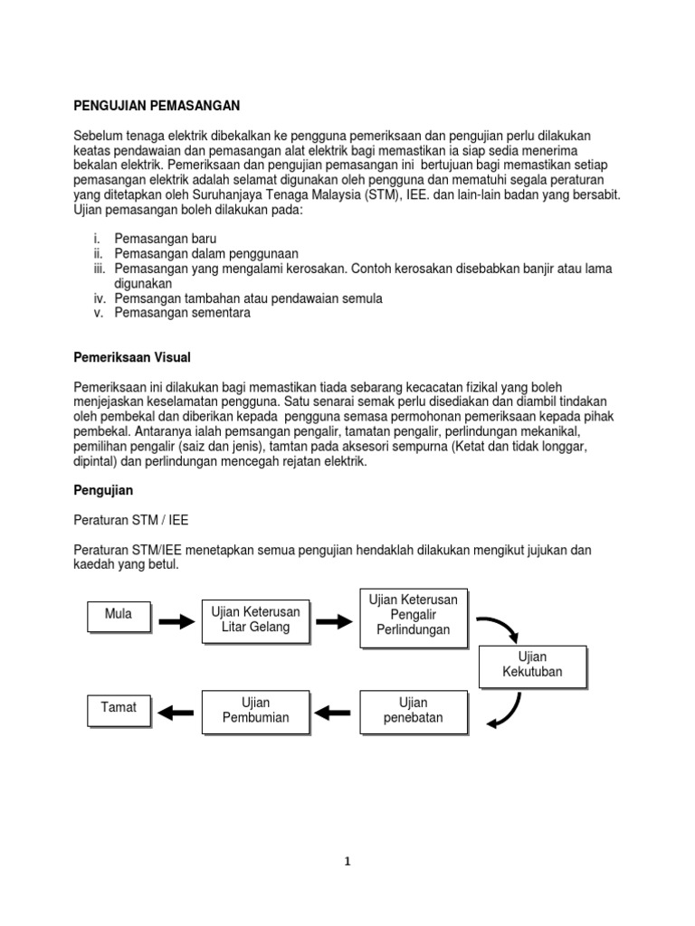Tajuk 9 Pemeriksaan Dan Pengujian Pendawaian Elektrik Doc Tajuk 9 Pemeriksaan Dan Pengujian Pendawaian Elektrik 9 1 Kehendak Perundangan I Mengikut Course Hero