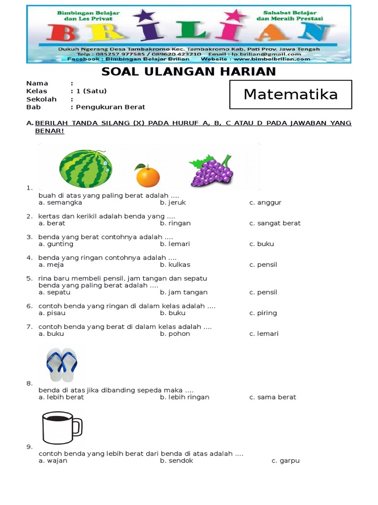 Latihan Soal Ulangan Umum Matematika Semester 1 Untuk Kelas 5 Sd Anti Remidi Les Privat