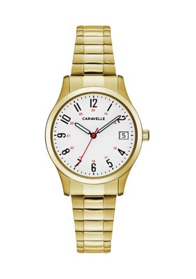 Caravelle Bulova Watch Womens Stainless Steel Gold Silver Water Re White Quartz Watch Liquidators